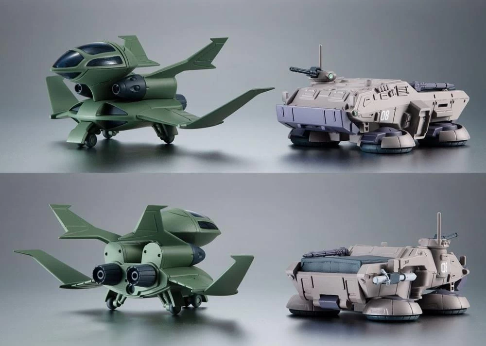 A second round of ver. A.N.I.M.E. series compatible option parts based on scenes from the OVA “Mobile Suit Gundam: The 08th MS Team.” The search & recon Hover Truck includes numerous options plus minifigures of Shiro, Michel, and Kiki. Options and accessories for Gundam Ground Type, plus a Dop Fighter, allow you to re-create the climactic battle from episode 6 of the series, “Battle Line in the Burning Sands.”