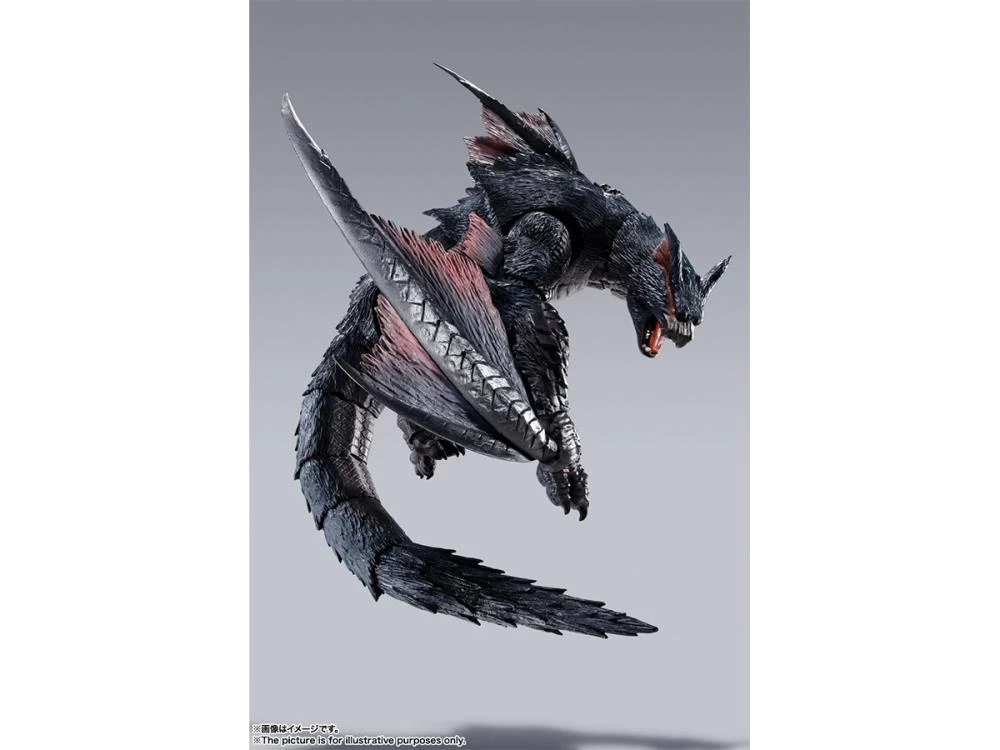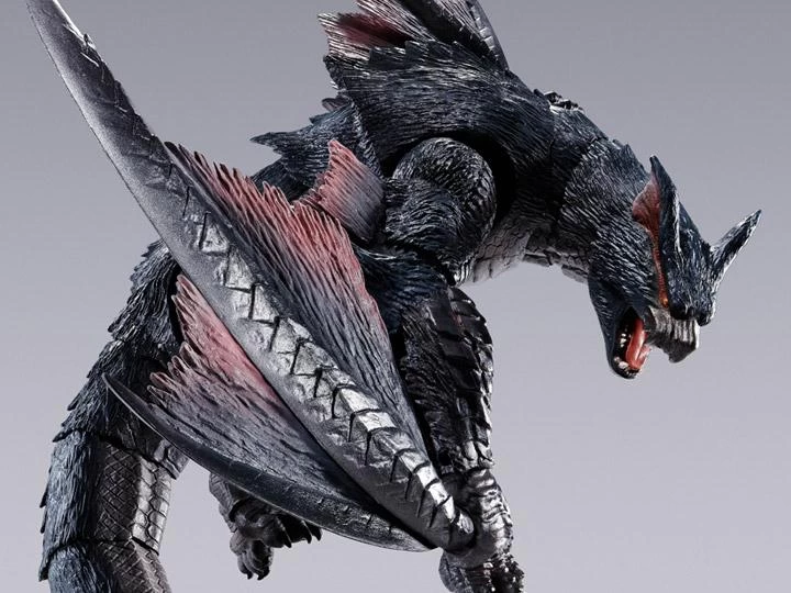 Say hello to the newest collaboration between S.H.MonsterArts and Monster Hunter. Nargacuga features immense details and several accessories including a pair of interchangeable eyes, sharp attack tail, severed tail, unpainted hunter figure, tree base, and figure stand.Â
