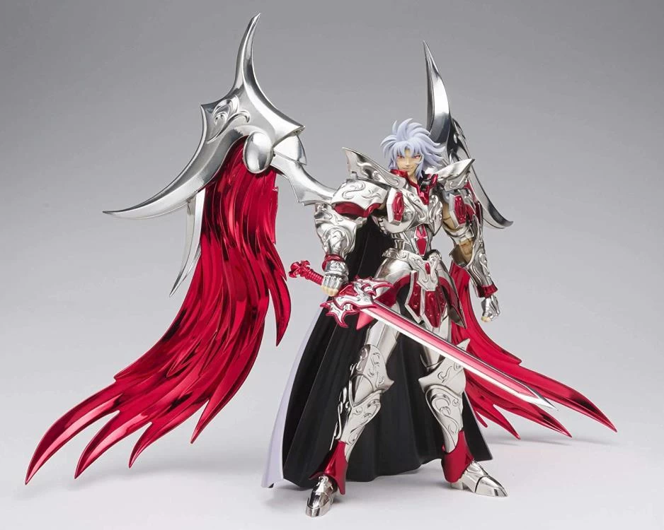 The fierce and relentless antagonist of the Gemini Saga, Ares, awakened as the God of War, joins the Saint Cloth Myth EX series! Recreated wearing his gorgeous silver and crimson-chrome colors, this is one stunning figure. The set includes cloth armor set, three optional expression parts, optional hair part, four left and five right optional hands, sword, golden apple, and object mode frame.