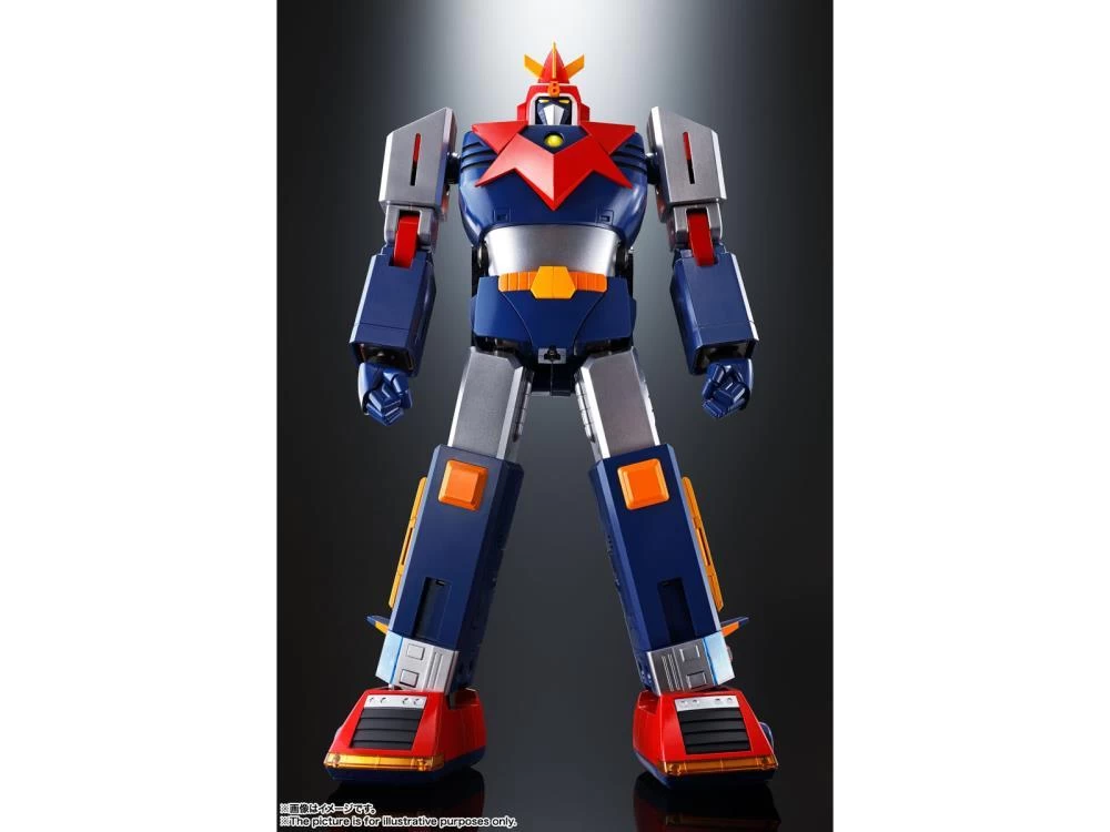 The legendary five-part combining super robot Voltes V is back with digitized combination sounds, special attack sounds, lines from the anime, and five songs! The five machines combine into the towering 36cm tall Voltes V — complete with sound effects for the docking sequence and weapon sounds! The support ship Taka-mecha and an all new enemy Boazan flying saucer are included, too