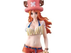 From the One Piece anime, the Sweet Style Pirates line from Banpresto features sweet character mash-ups. Standing just over 9 inches tall the pirate Nami is dressed in the color scheme of Tony Tony Chopper and even includes his hat.