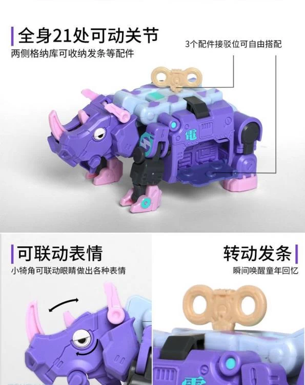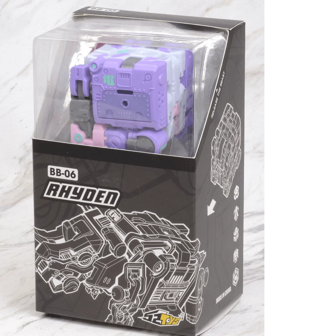 BeastBOX is an original series of robotic style creatures that transform into cubes. The BeastBOX BB-06 Rhyden has a creature mode of a Rhinoceros.