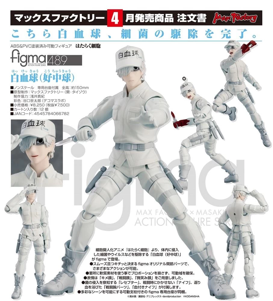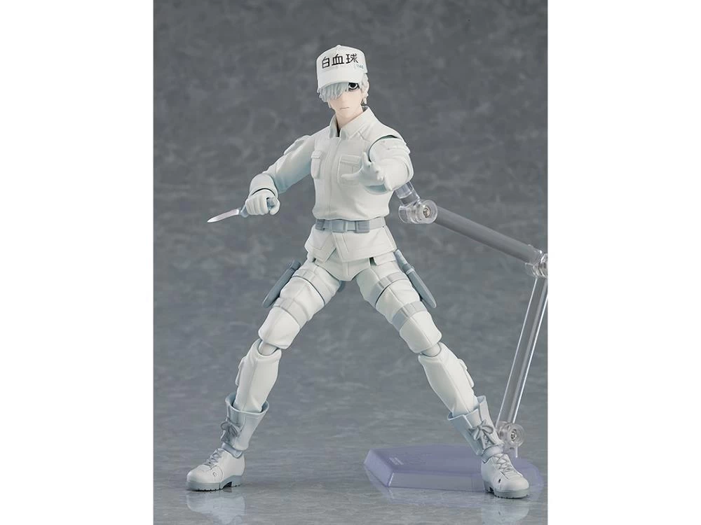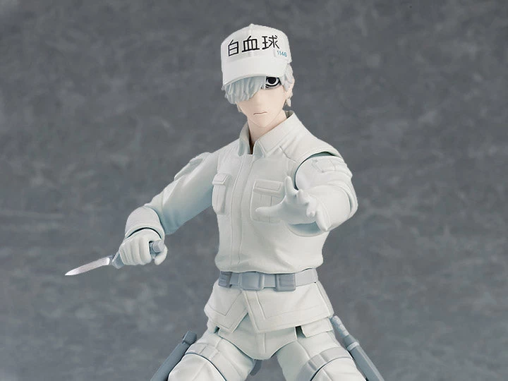 From the anime series Cells at Work! comes a figma of the cell that kills foreign bacteria and viruses in the body – the White Blood Cell (Neutrophil)! Using the smooth yet posable joints of figma, you can act out a variety of different poses. His receptor for locating unwanted bacteria, knife for combating viruses, interchangeable blood-stained arm parts and a blood-stained knife are all included.