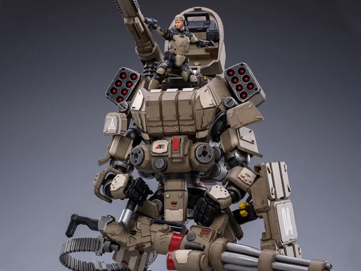 Joy Toy’s military vehicle series continues with the Iron Wrecker 04 Heavy Firepower Mecha and pilot figure! Each 1/25 scale articulated military mech and pilot features intricate details on a small scale and comes with equally-sized weapons and accessories.