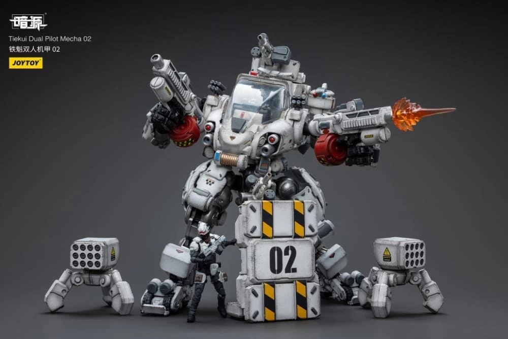 Joy Toy’s military vehicle series continues with the Tiekui Dual Pilot Mecha (Ver. 2) and pilot figures! Each 1/25 scale articulated military mech and pilot features intricate details on a small scale and comes with equally-sized weapons and accessories.