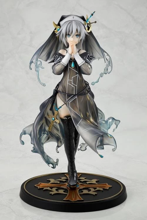 From the popular anime “Date A Live IV” comes a 1/7th scale figure of the ninth spirit, Nia Honjo! Faithfully recreated Nia wears the “Spirit Dress of God’s Authority, Number 2″Yod, with clear parts that give it a translucent feel, a flowing skirt and veil, and detailed accessories. Please also pay attention to the pedestal decorated with a cross with the motif of the angel that she manifests. Enjoy adding this Nia Honjo figure to your Date a Live collection!