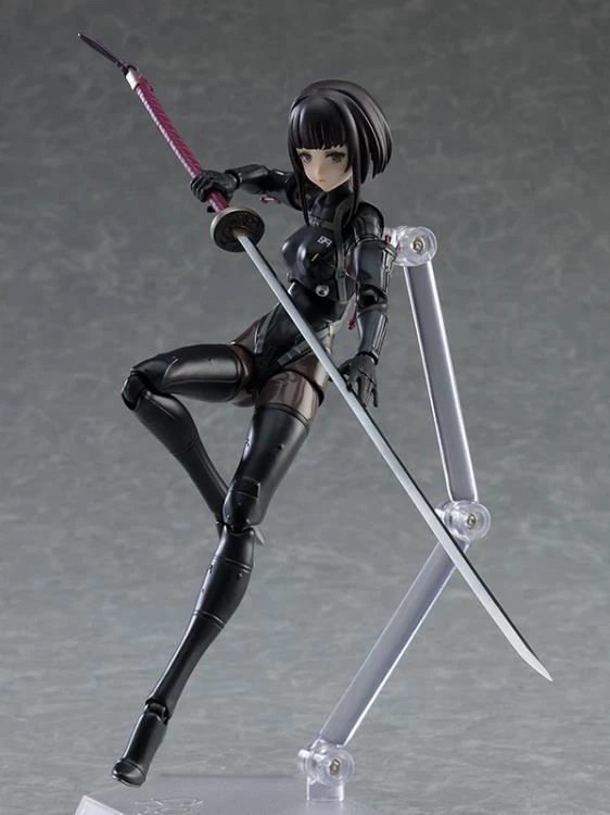 Using the smooth yet poseable joints of figma, you can create a variety of poses on the included articulated figma stand. She comes with three face plates: an expressionless face, a face with closed eyes and a glaring face.