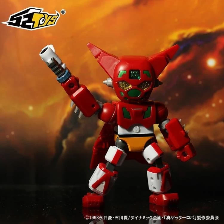 As seen in “Getter Robo Armageddon,” here’s the mighty Getter 1, now small and cute thanks to 52TOYS! Part of their Megabox lineup, he folds up into a 5cm-square cube when he’s not fighting evil. He’s armed with his Getter Tomahawk and Getter Machine Gun, too.