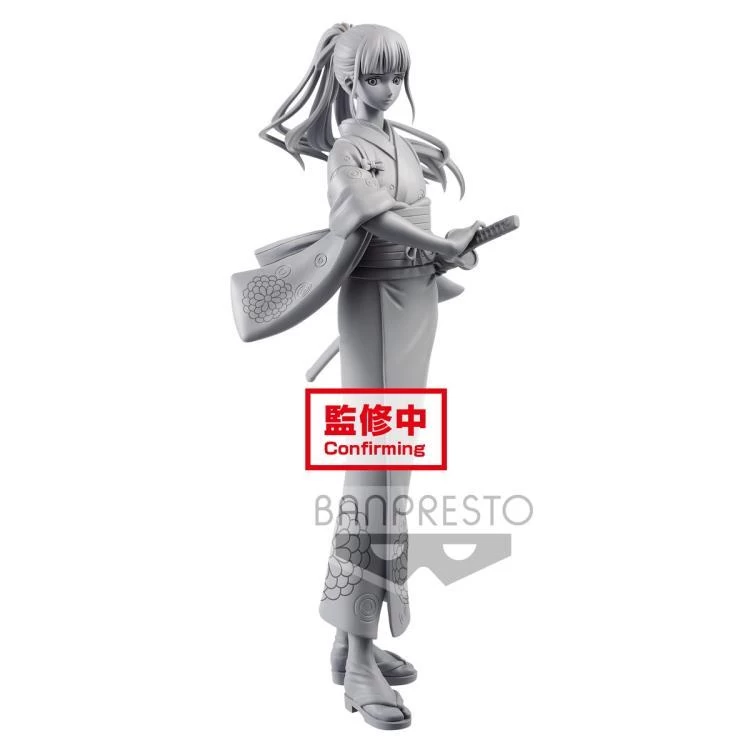 From the One Piece anime, Okiku joins the Glitter & Glamours figure line by Banpresto. Okiku stands over 9.50 inches tall with a hand on her sword and kimono blowing in the wind.