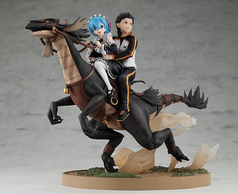 From the anime series “Re:ZERO -Starting Life in Another World-” comes a figure of Rem and Subaru riding on the back of Patrasche, locked in a battle of life or death with the White Whale, a battle that finished off the series’ first season.