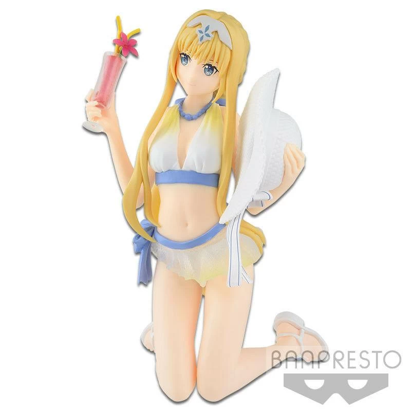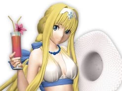Sword Art Online: Code Register’s Alice joins the EXQ Figure party with this beautifully sculpted figure from Banpresto. Wearing a cool blue and silver bikini, Alice is complete with her tiara and seems ready to relax with her sun hat in one hand and a tasty drink in the other.