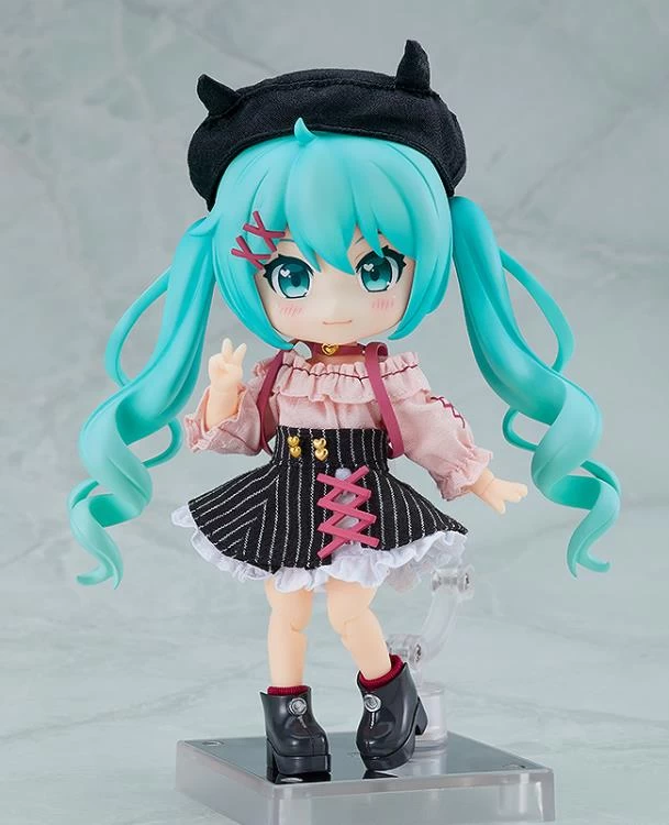 The Nendoroid Doll series of palm-sized action figures feature the same heads as standard Nendoroids, but alternate doll-like bodies that are highly articulated and can easily be dressed up into different outfits! Mozu’s design from the “Win Your Heart ♡ Date Outfit” design contest held on the piapro website has been faithfully captured in Nendoroid Doll form.