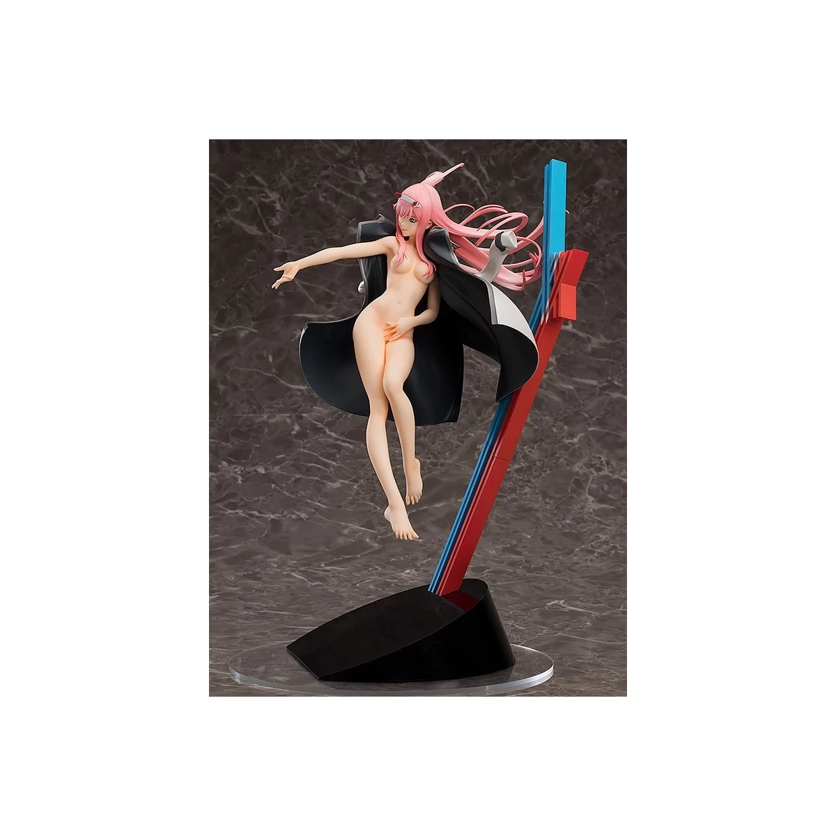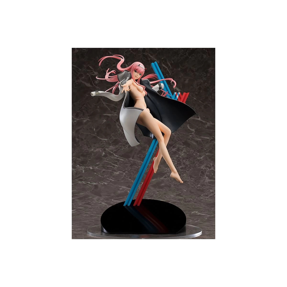 From the popular anime series “DARLING in the FRANXX” comes a scale figure of Zero Two in an original pose based on her appearance in the opening! Her supple body and flowing hair have been carefully recreated in an eye-catching pose as though suspended in mid-air as her outstretched hand reaches out to her “Darling”. Be sure to add her to your collection!